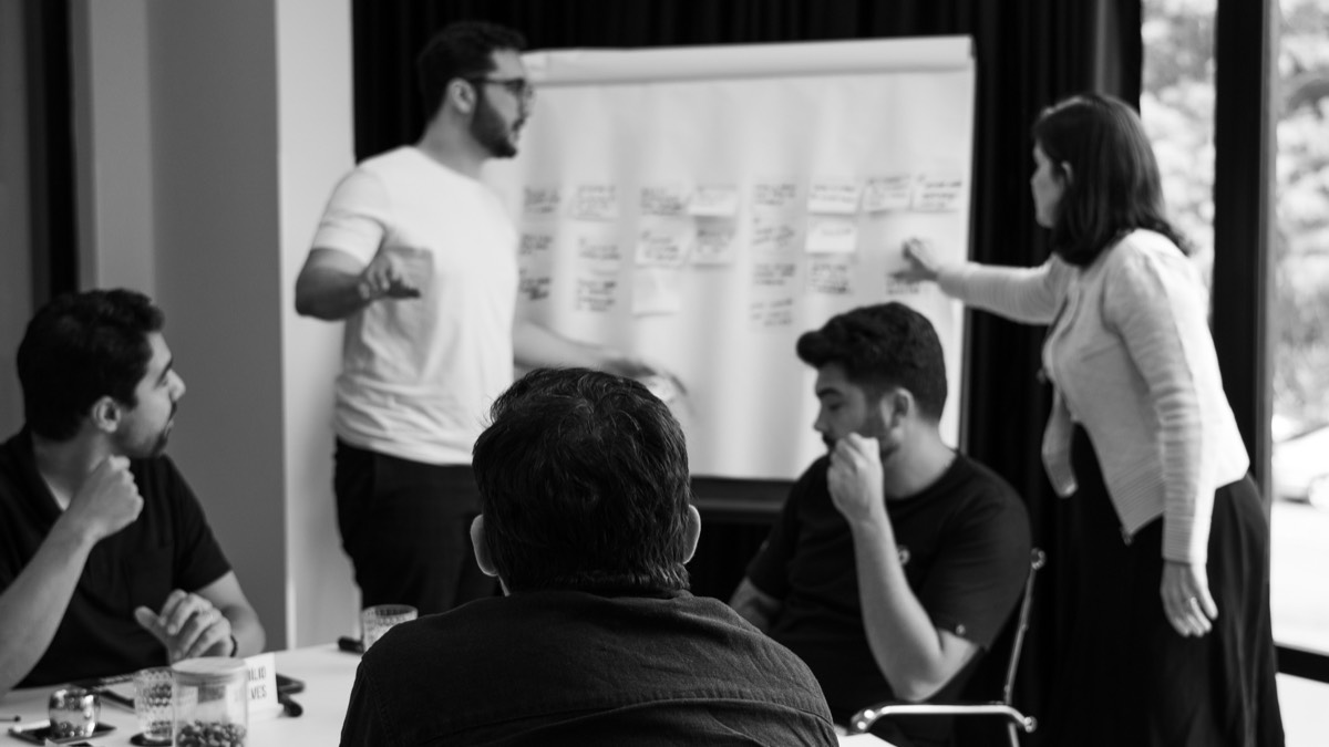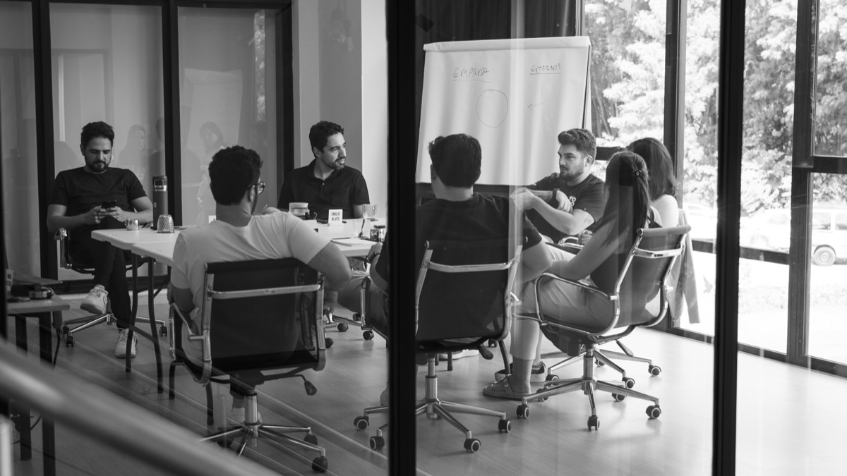 Colocamos todos na mesma página do desafio. Um time com contexto compartilhado tem mais visão e poder para tomar decisão. Aqui, especialistas também dividem seu conhecimento e todos partem do mesmo lugar.