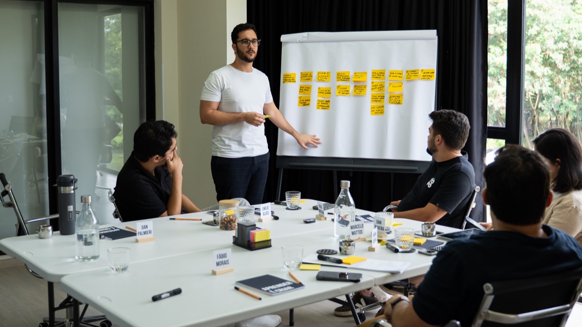 Passei anos facilitando processos criativos. Vi de perto o padrão que trava empresas: ideias boas demais que se perdem na necessidade de reuniões de alinhamento, decisões que envolvem pessoas que não estão na mesma sala, muito debate e planos mas pouca coragem de testar rápido para aprender cedo.